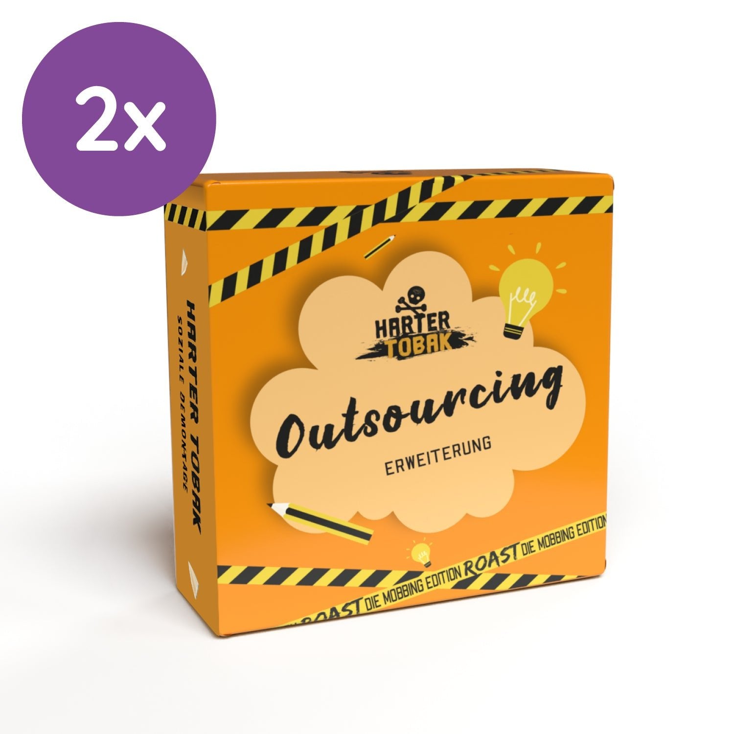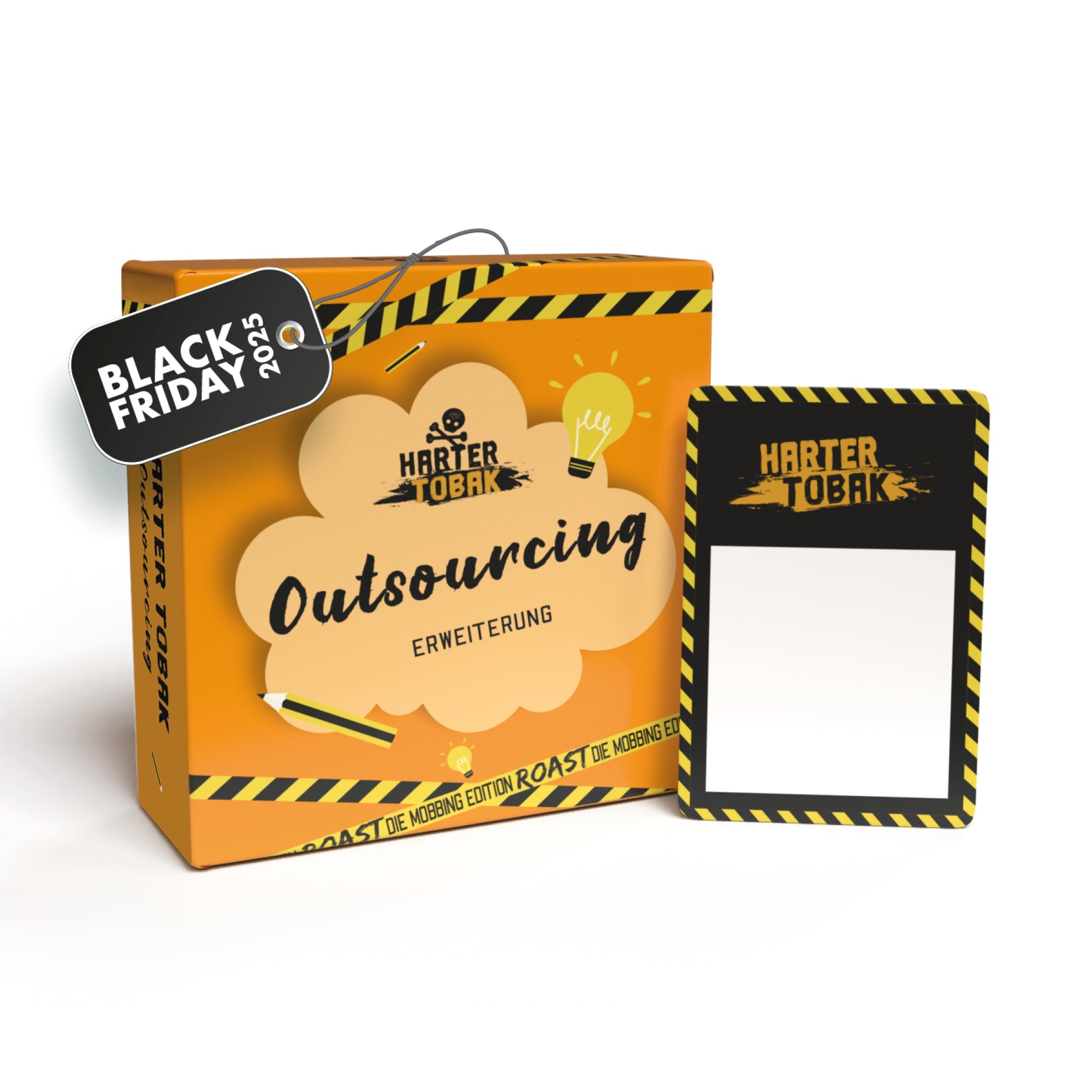 Ergänzend zu den 500 Karten von Harter Tobak Roast und allen Karten der anderen Erweiterungen, könnt ihr mit Outsourcing endlich eure eigenen Lückentexte, Lückenfüller und Bestrafungskarten entwerfen.