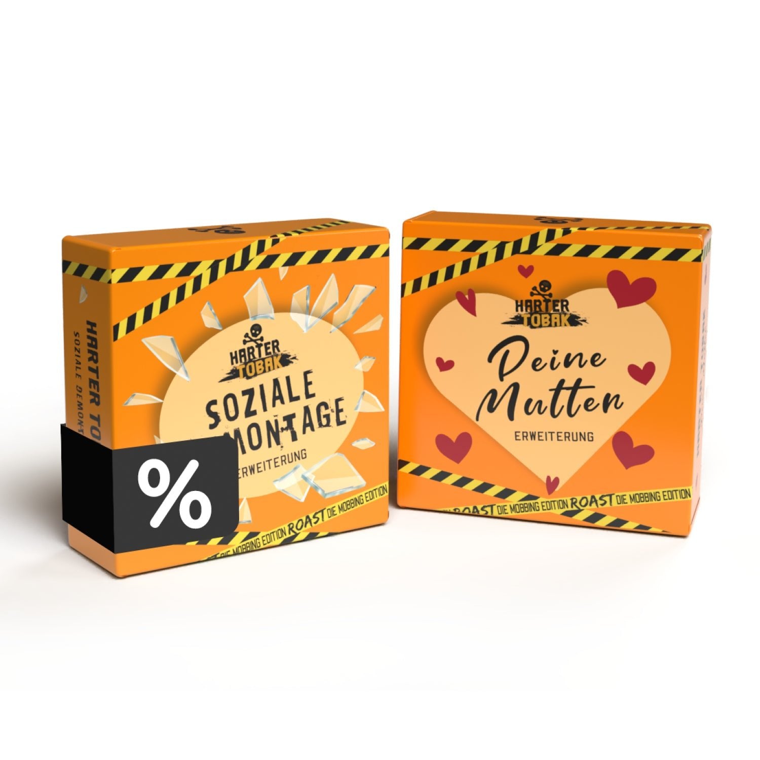 🟣 ERWEITERUNG: Mit 80 Karten ergänzt ihr Harter Tobak Roast Klassik oder Harter Tobak Roast XXL und erweitert euer Roast-Portfolio.