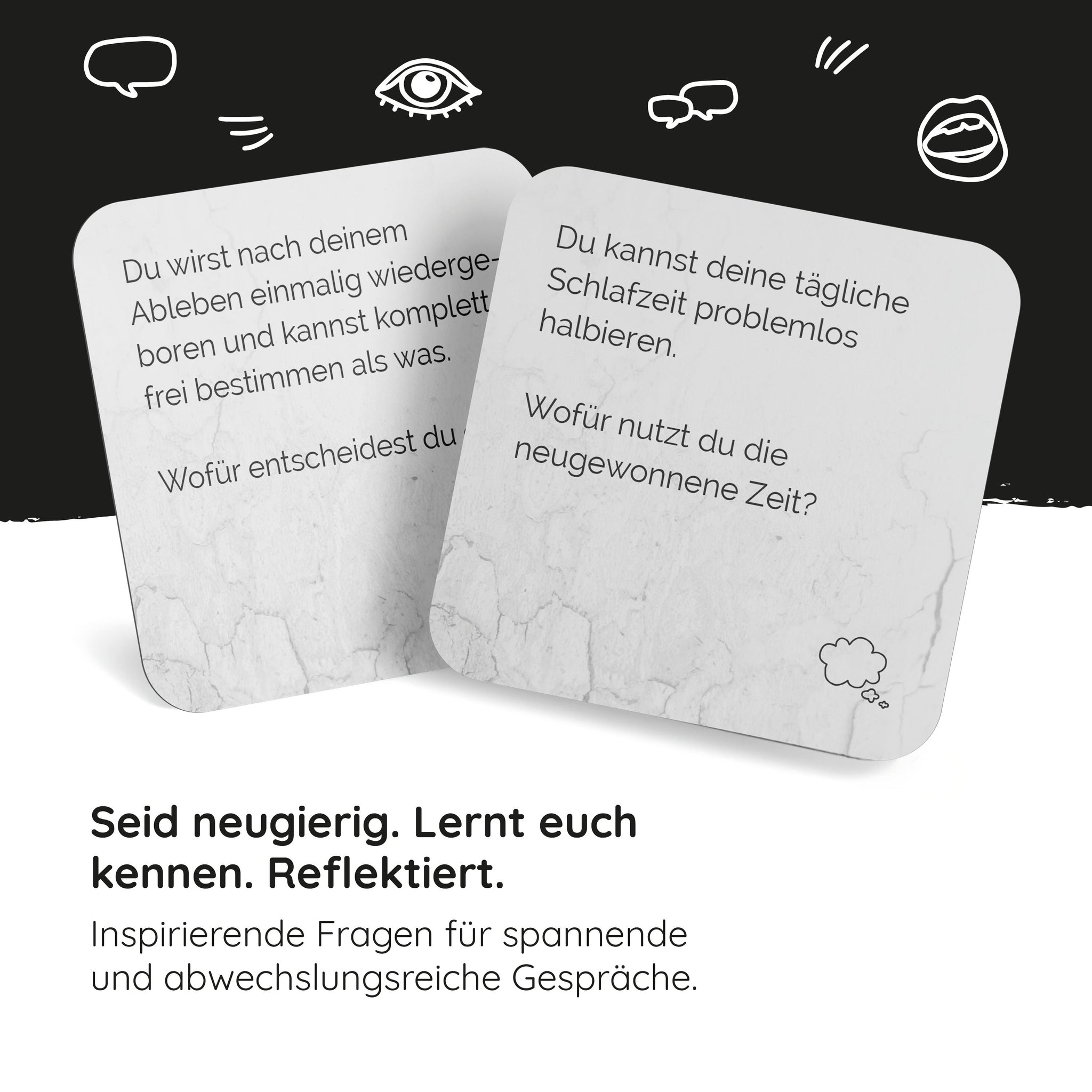 Erzählt euch mehr ist das ideale Spiel für alle, die gerne tiefgründige Gespräche führen und ihre Kommunikationsfähigkeiten verbessern möchten.